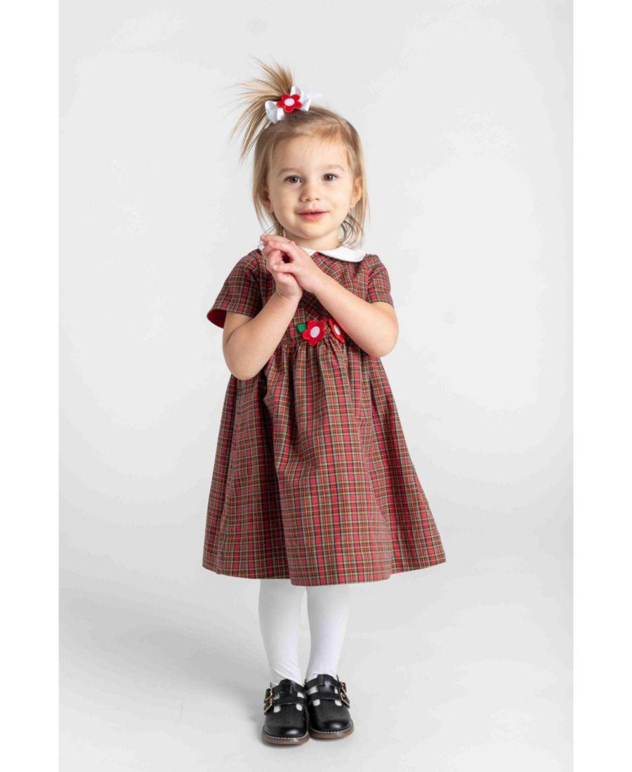 Детское клетчатое платье для девочек с цветами Florence Eiseman, Red, green, white