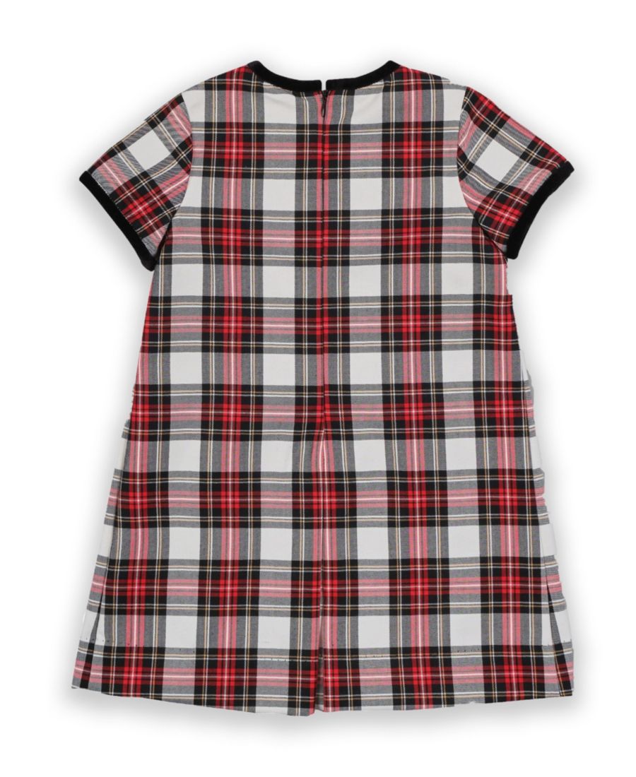 Белая, красная и черная клетка Банты из черного бархата Складки спереди Застежка-молния сзади Длина выше колена 65% полиэстер / 35% вискоза Машинная стирка Импортный товар