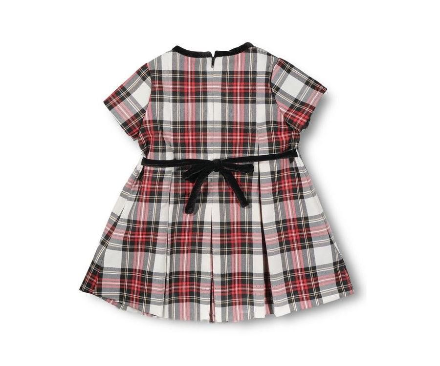 Элегантное и вневременное клетчатое платье от Флоренс Эйземан в классических белых, красных и черных тонах отличается роскошными складками спереди, украшенными изящными черными бархатными бантами. Завершает образ черная бархатная окантовка горловины и аккуратная застежка-молния сзади. Это платье выше колена сочетает в себе изысканность и комфорт. Ткань легко стирается в машине.