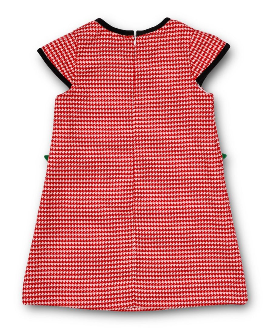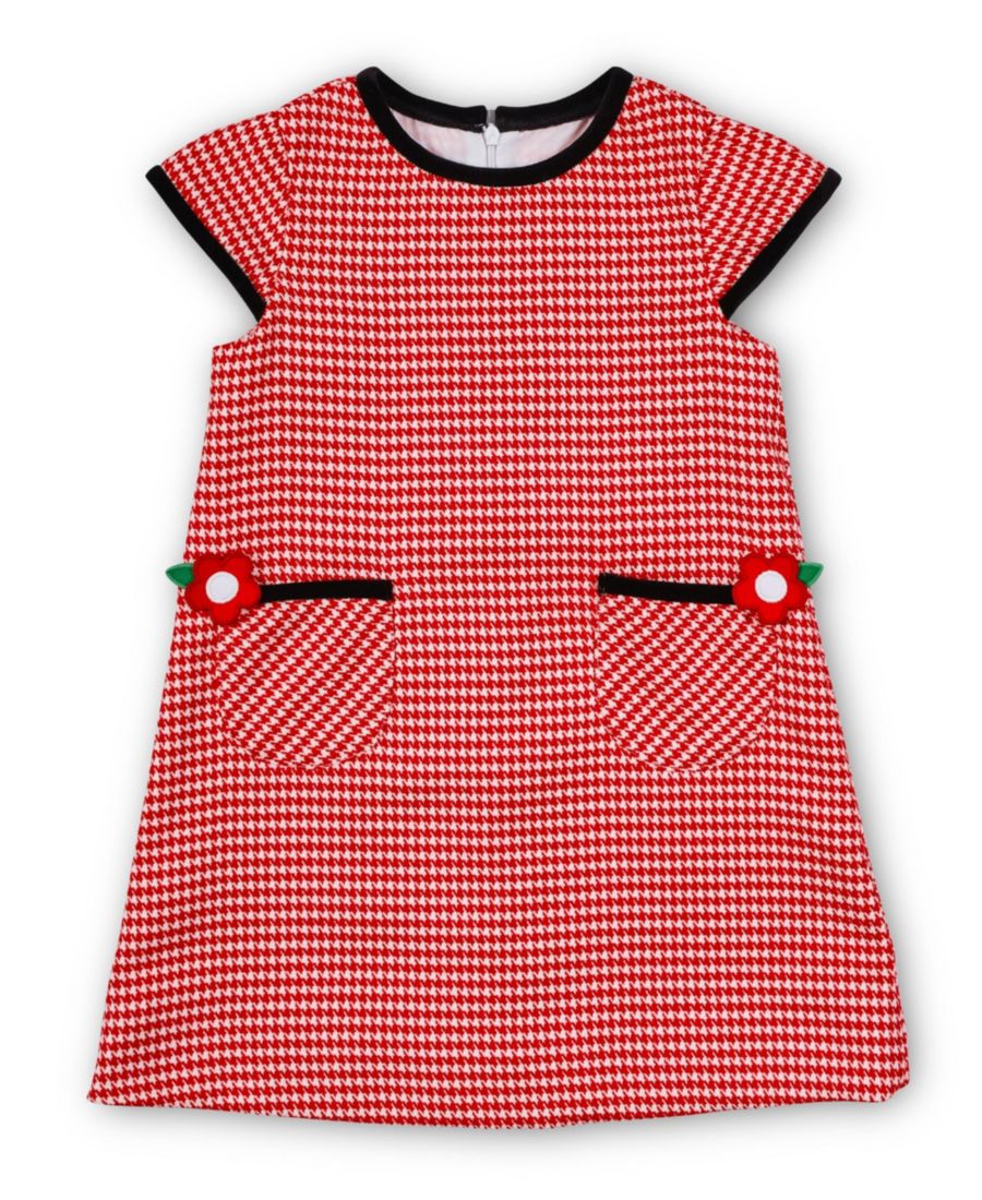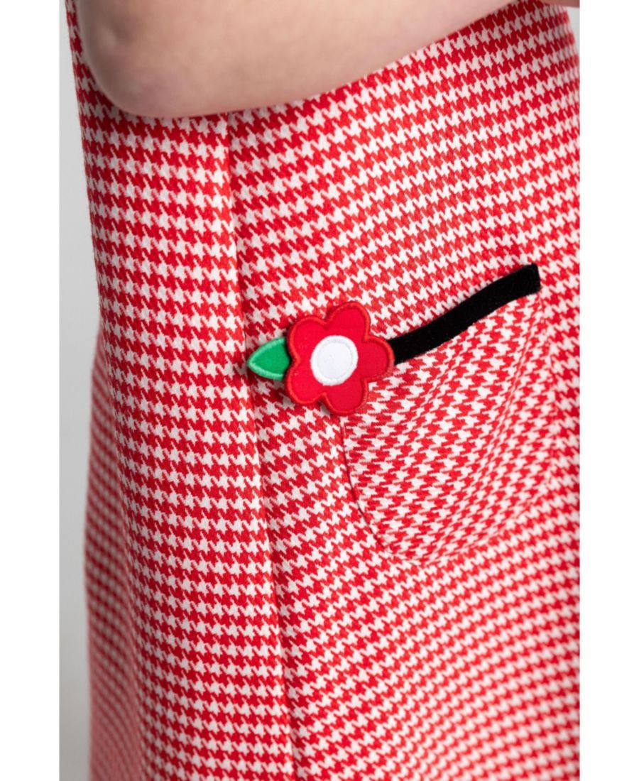 Платье в клетку гусиная лапка от Флоренс Эйземан сочетает в себе классический красно-белый узор с элегантной черной бархатной отделкой на воротнике и рукавах. Изящные цветочные аппликации и практичные накладные карманы дополняют это стильное платье, аккуратно застегивающееся на молнию сзади. Подходит для машинной стирки, изысканность для любого особого случая.