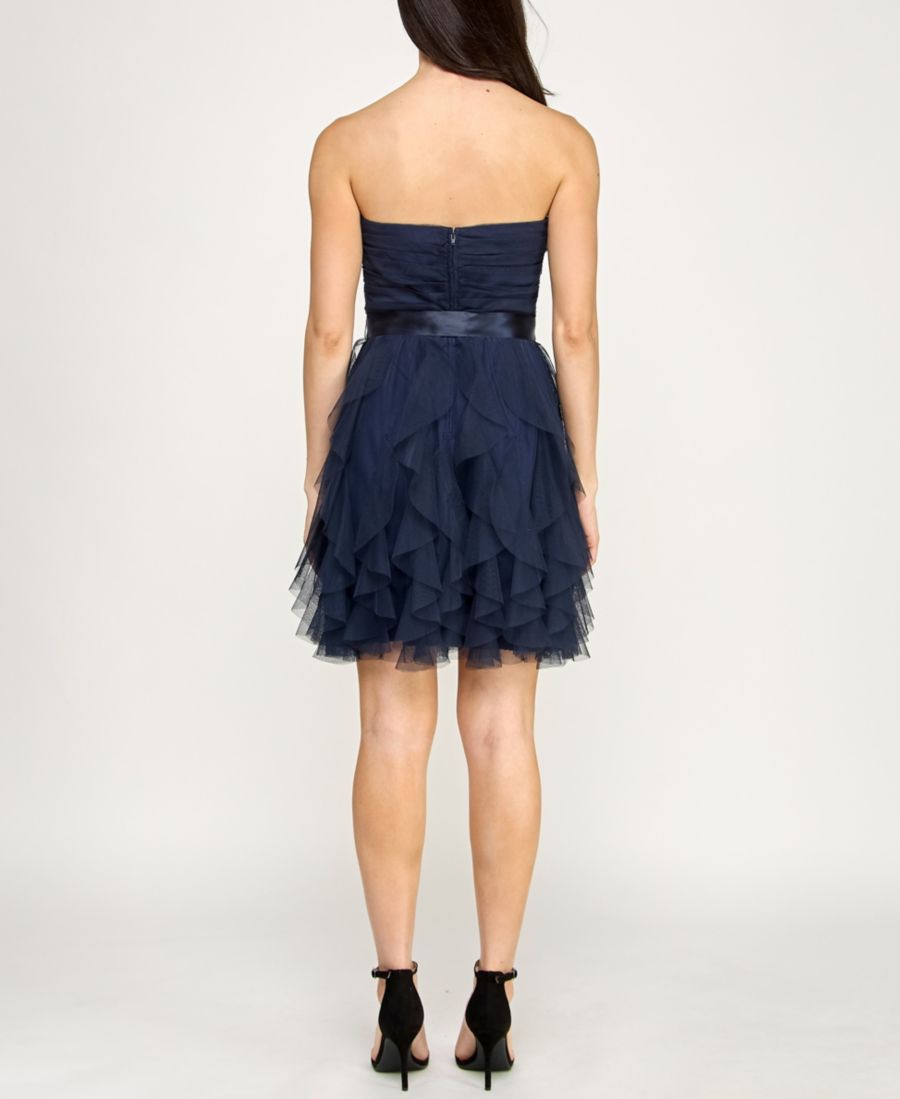 Детское платье без бретелей с сетчатыми оборками pear culture, Navy
