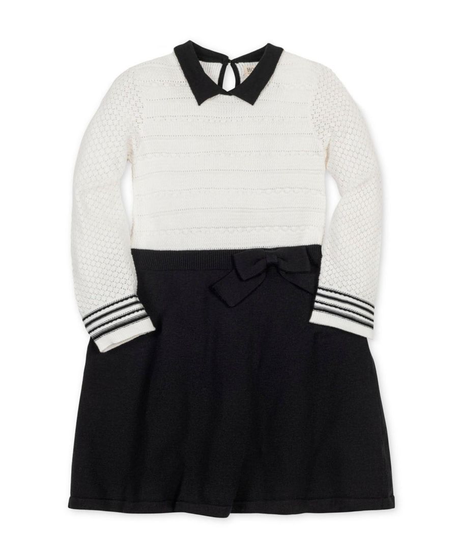 Детское платье-свитер с воротником Питер Пэн и бантом для девочек Hope & Henry, Soft white and black