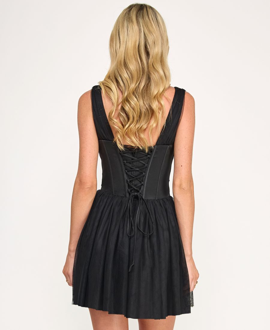 Мини-платье-балет с V-образным вырезом и корсетом для подростков KATIA RAE, Black