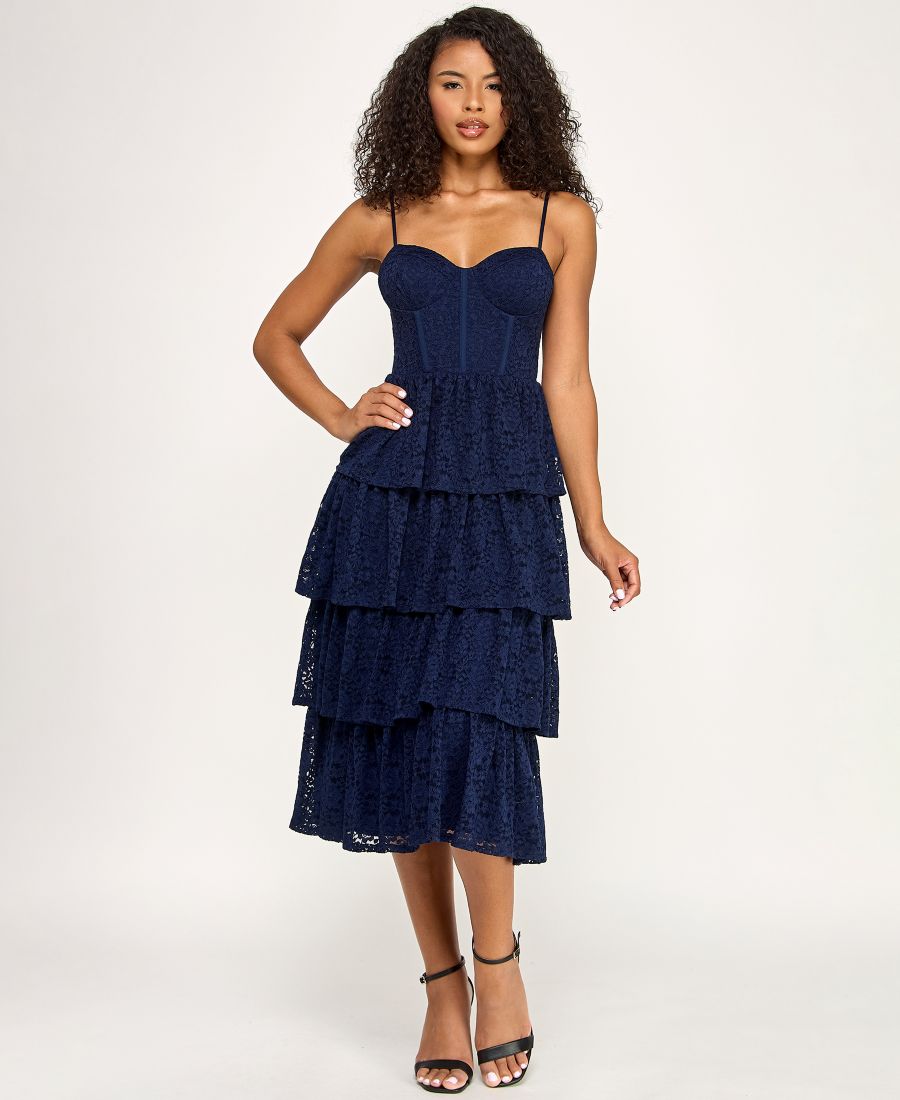 Многослойное миди-платье с вырезом сердечко для подростков SENI & CADE, Navy