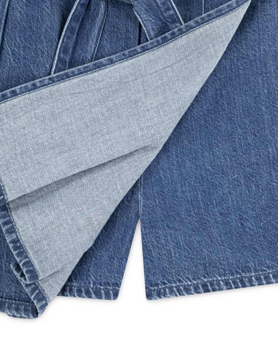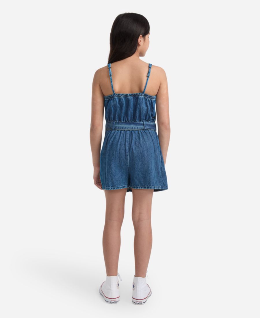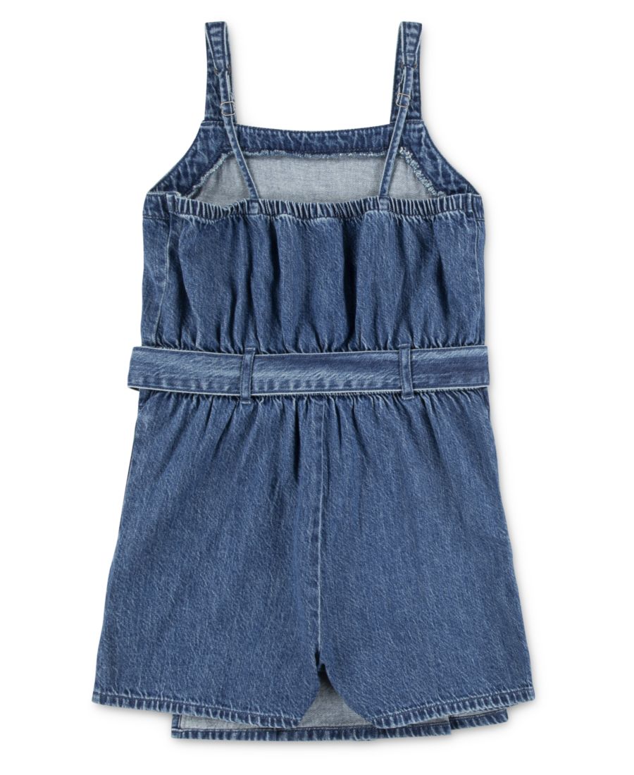 Этот комбинезон от Abercrombie Kids - это сочетание комбинезона и юбки-шорт. Он выполнен из струящейся хлопковой джинсовой ткани с завышенной талией, имеет эластичный пояс с пришитым ремешком на завязках и плиссированную переднюю часть юбки.