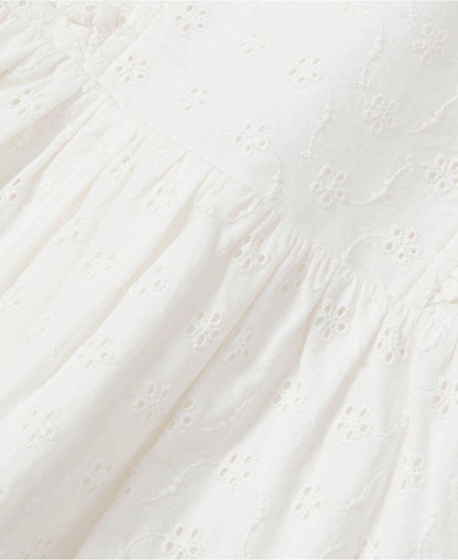 Как раз к весне, это легкое тканое платье выполнено из перфорированной ткани и украшено милыми маленькими оборками на рукавах и груди. Сочетайте его с кроссовками и джинсовой курткой для создания очаровательного летнего образа.