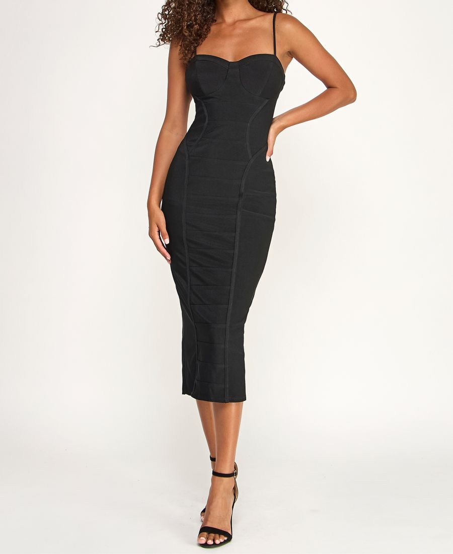 Детское облегающее платье-корсаж с вырезом сердечко миди KATIA RAE, Black