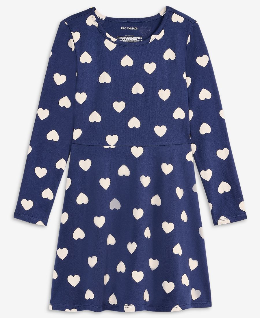 Платье с длинными рукавами и принтом в виде сердечек для девочек 5-20 лет Epic Threads, Medieval Blue