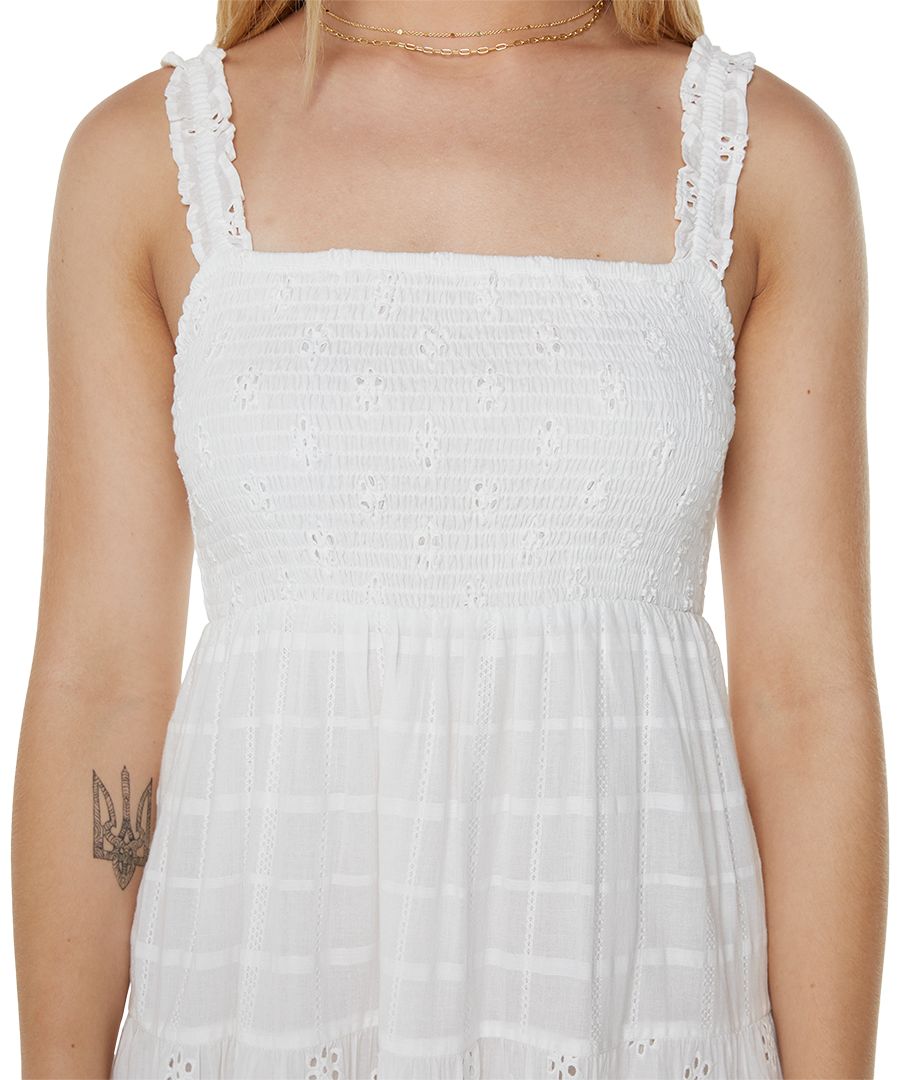 Платье Lily Bloom от Roxy - это прекрасный образец стиля бохо, украшенный перфорацией по всей поверхности и выполненный из свежего хлопка.
