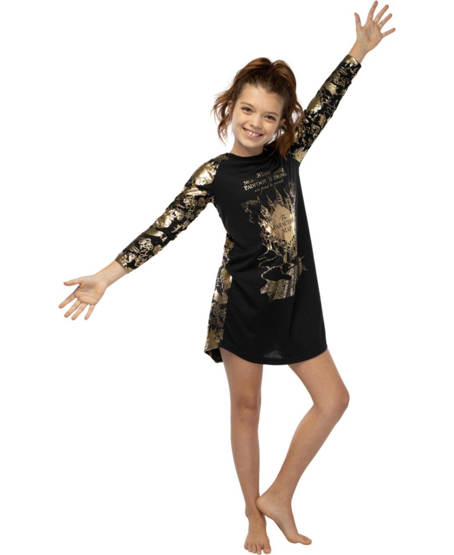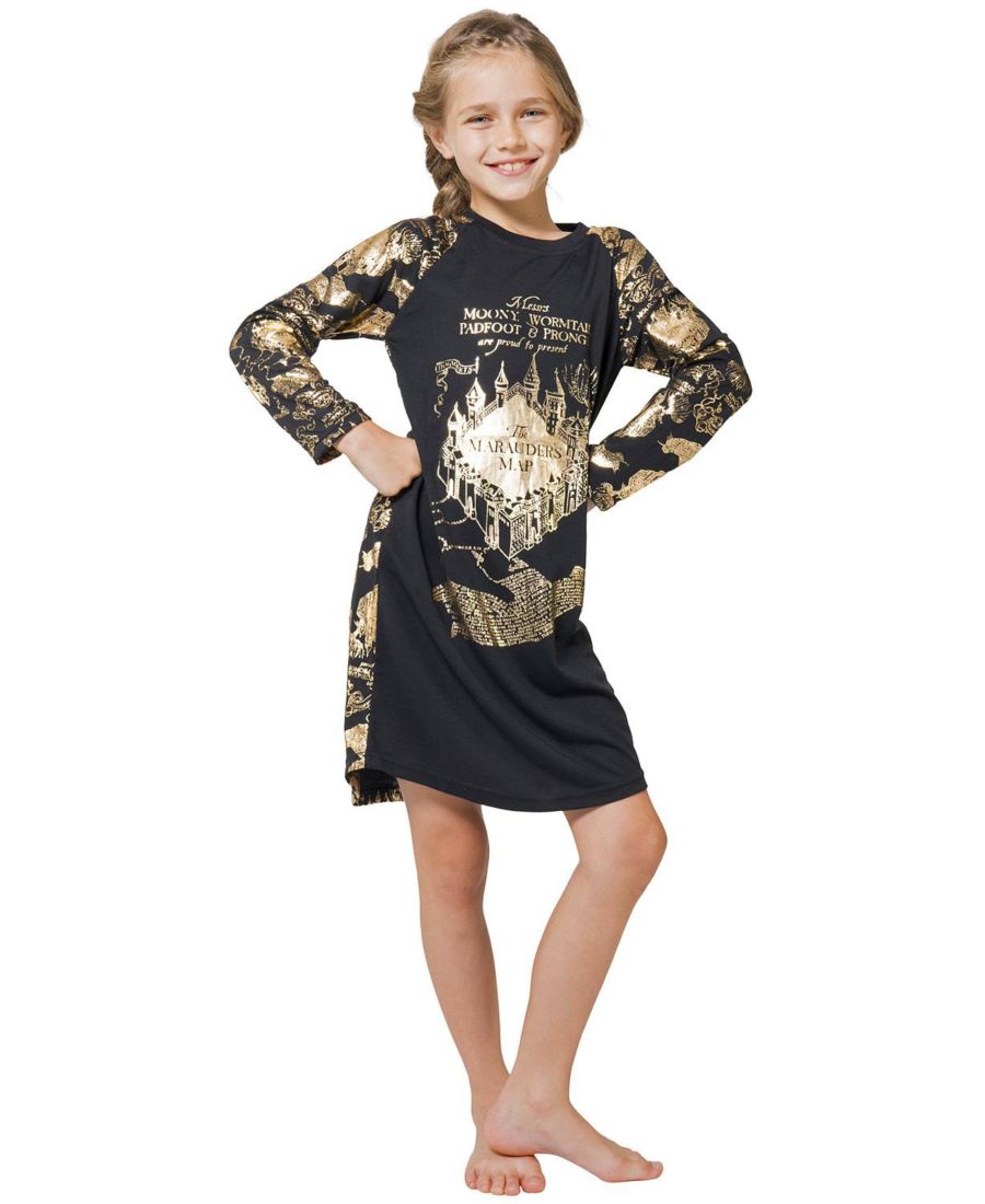 Ночная рубашка для девочек постарше, пижама-реглан с длинными рукавами и рисунком Карта Мародеров Harry Potter, No Color