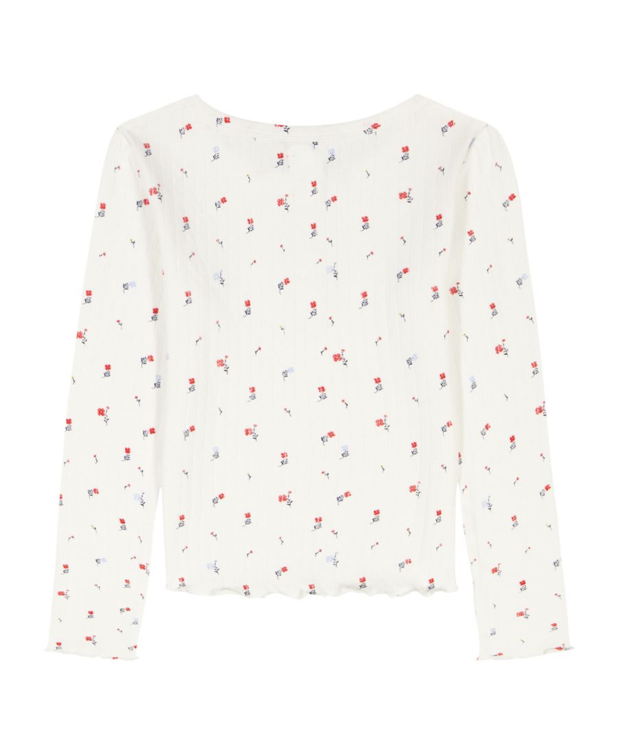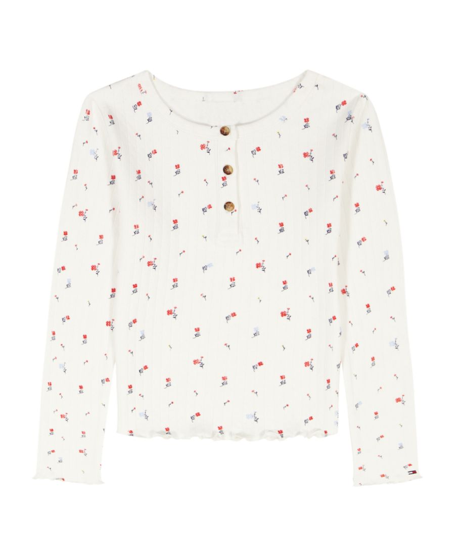 Эта футболка-поло от Tommy Hilfiger выполнена из мягкой фактурной ажурной ткани с мелким цветочным принтом, имеет застежку на пуговицах и длинные рукава с волнистой каймой.