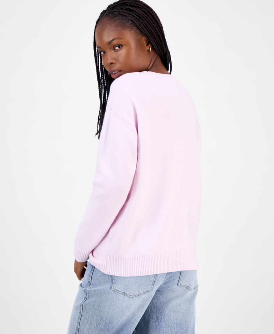 Очаровательный свитер с круглым вырезом от Hooked Up by IOT, связанный в технике интарсии с изображением зайчика, добавляет ему очарования.