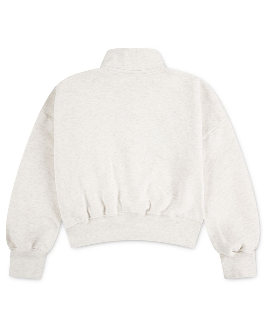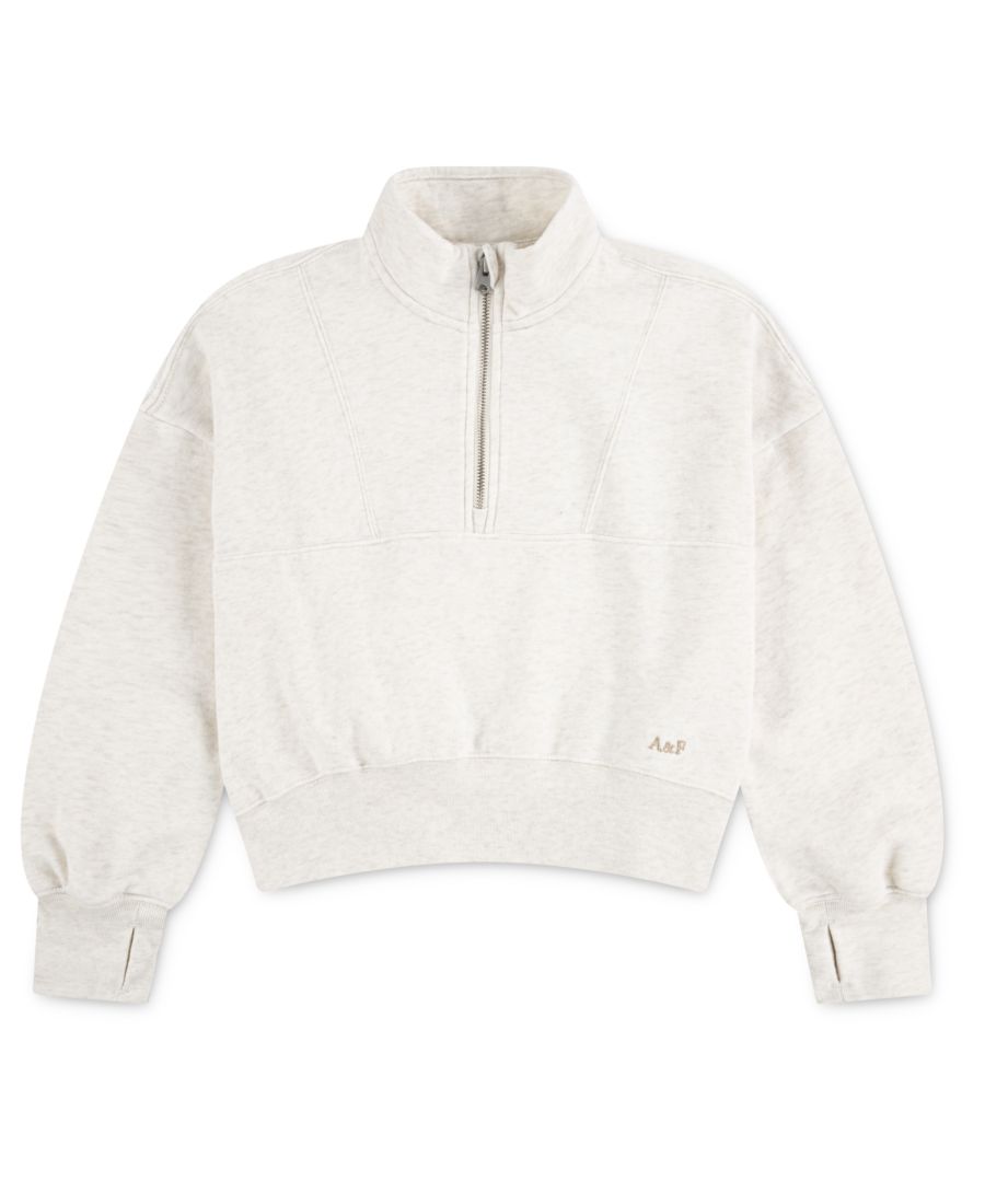 Создайте стильный многослойный образ с помощью этого укороченного пуловера от Abercrombie Kids. Свободный силуэт, застежка-молния до середины и ребристые манжеты с отверстиями для больших пальцев создают спортивный, расслабленный образ.