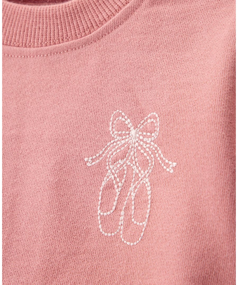 Топ: ребристый круглый вырез; длинные рукава с ребристыми манжетами; надевается без застежек; деталь в виде балетных туфелек на левой стороне груди; тюлевая баска.