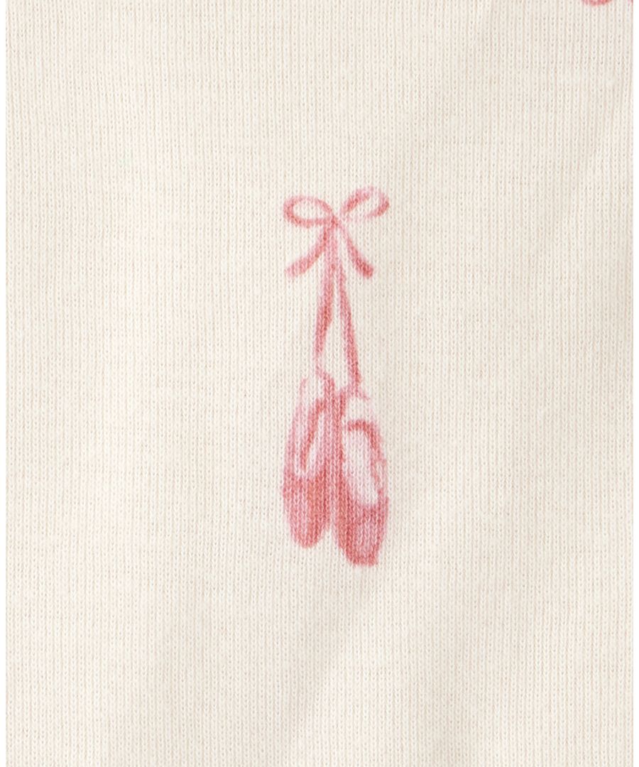 Боди: круглый вырез; короткие рукава; открытые плечи; застежки-кнопки внизу; принт балетных туфелек по всей поверхности.