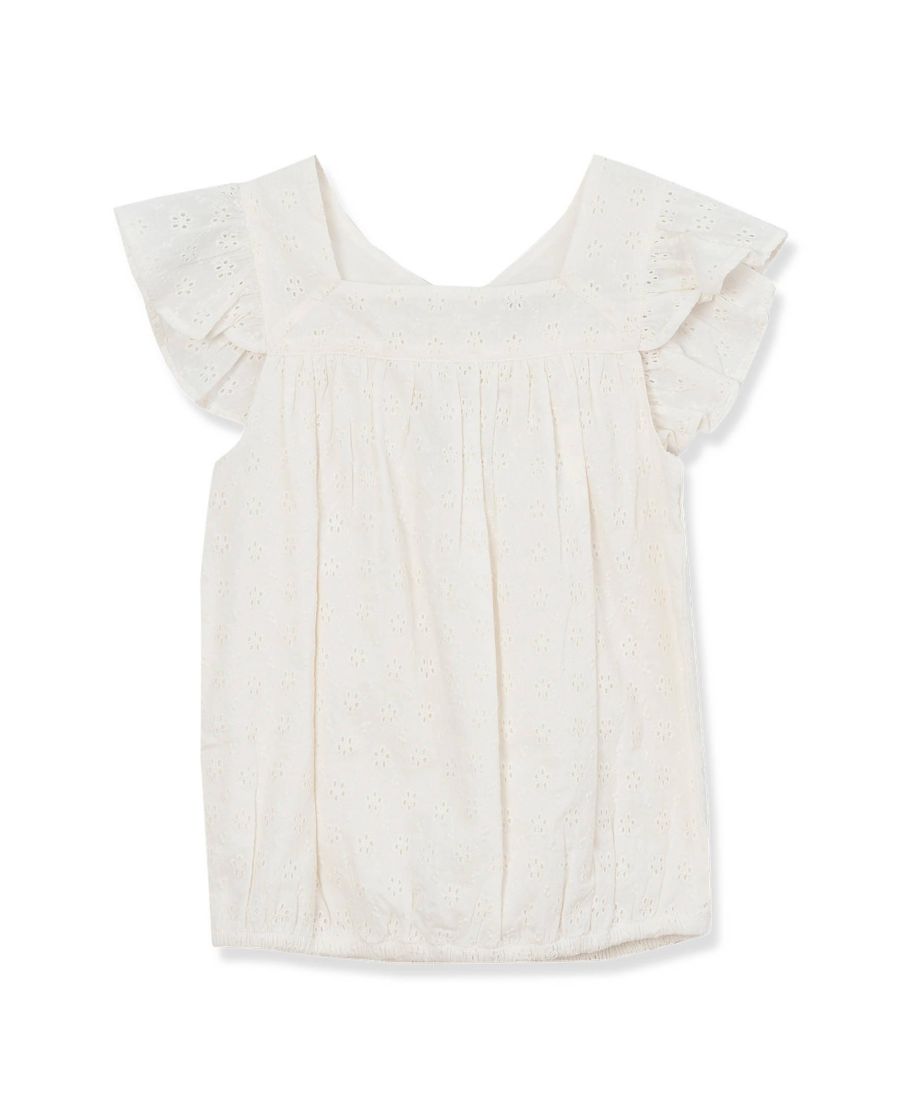 Детский тканый топ с перфорацией Lands' End, Ivory