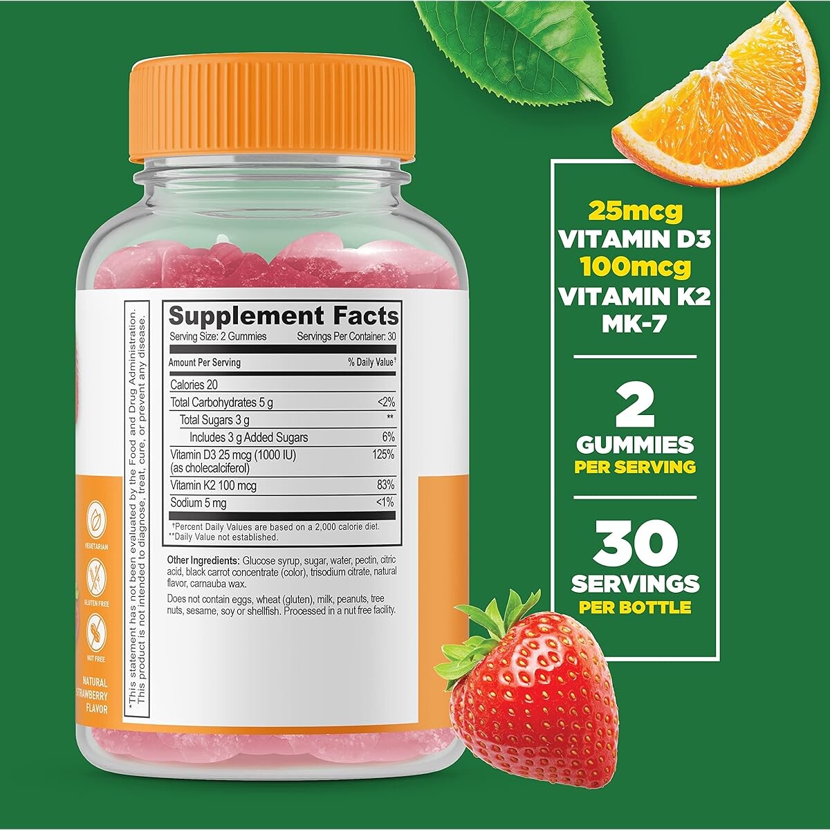 Lifeable Vitamin D3 + K2 - без глютена, вегетарианские и не содержащие ГМО жевательные конфеты. Для крепких и здоровых костей.