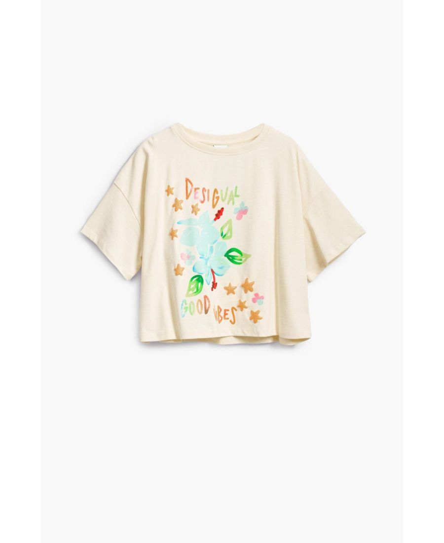 Девочки, Детская футболка с принтом Desigual, Light beige