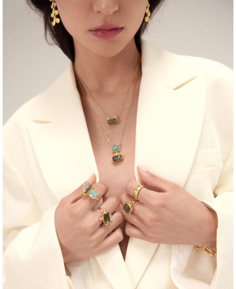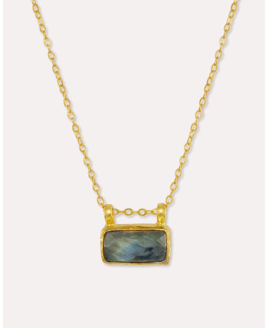 Идеальное дополнение к вашей коллекции колье, подвеска Alessa с лабрадоритом добавит изысканный геометрический элемент, который непременно подчеркнет ваш стиль, благодаря насыщенным сложным оттенкам полудрагоценного камня лабрадорита. Изготовлено из латуни с 21-каратным золотым покрытием и вручную в нашей мастерской в Стамбуле.