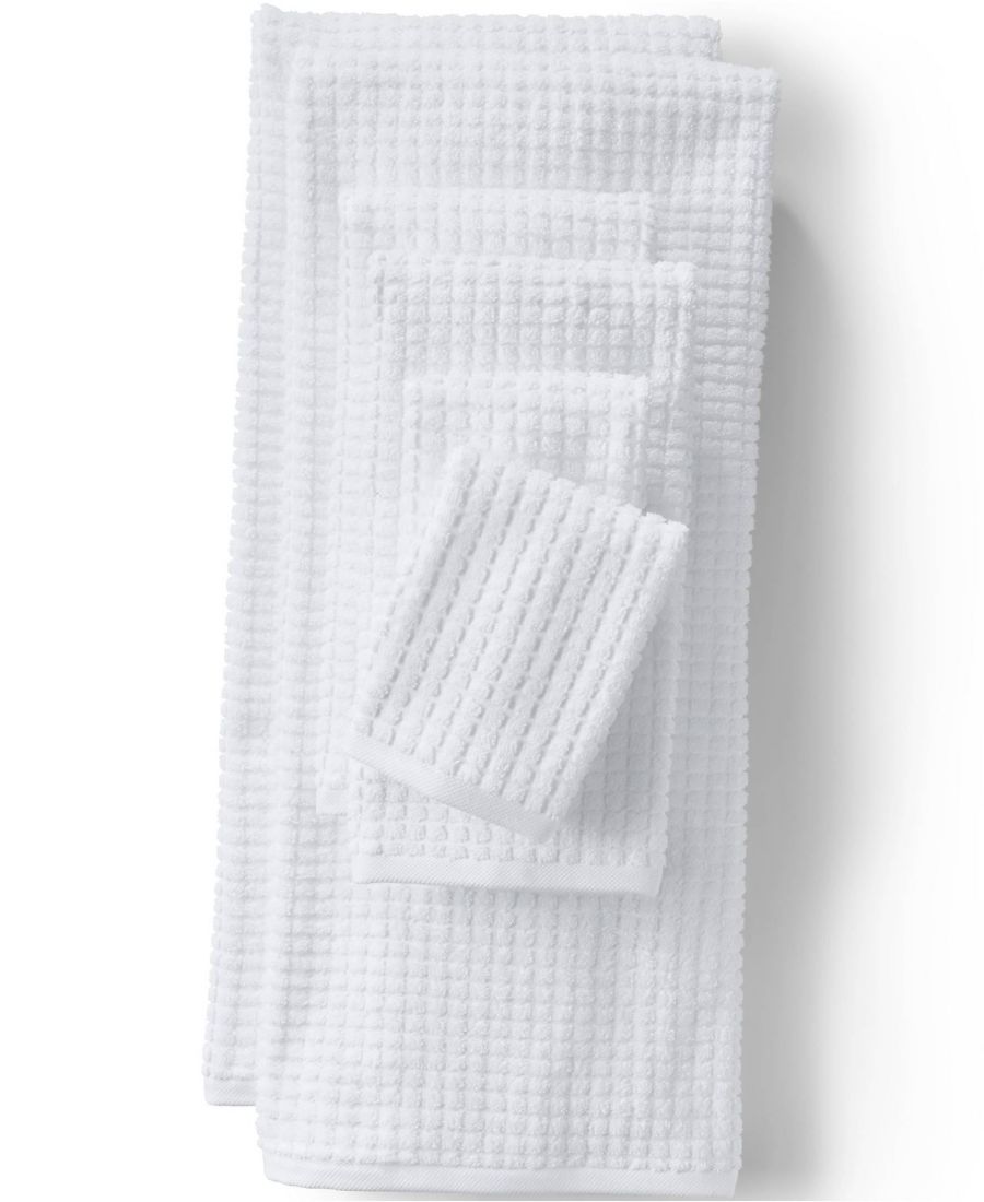 Набор из 6 хлопковых вафельных полотенец Lands' End, White