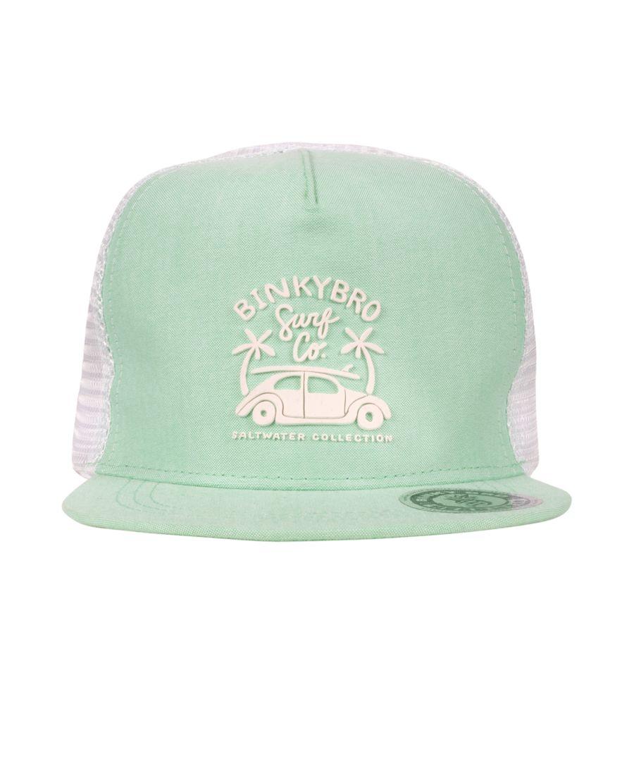 Бейсболка Cabrillo Snapback украшена белым ретро-логотипом BinkyBro спереди, светло-зелеными/бирюзовыми вставками спереди и белыми сетчатыми вставками сзади. Это кепка стандартного размера. Доступны размеры для младенцев, малышей, подростков и взрослых.