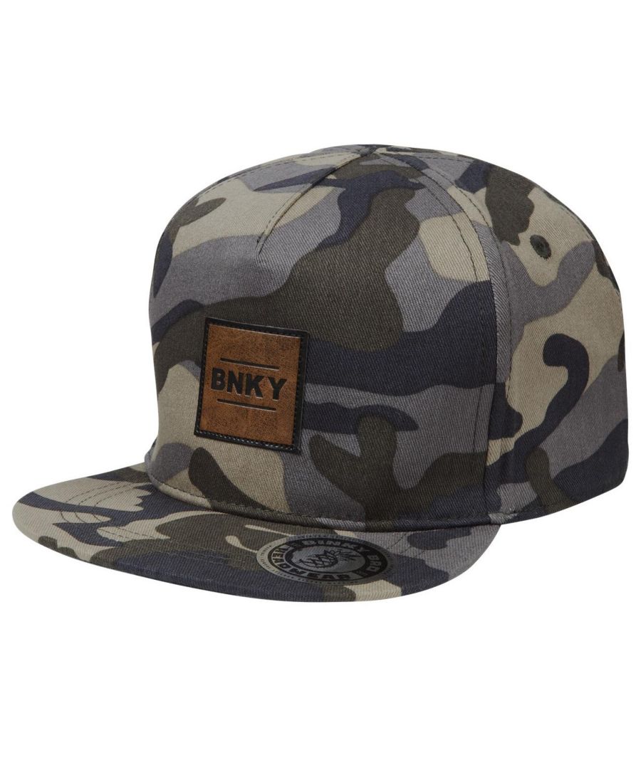 На кепке Java спереди вытиснен логотип "BNKY" из искусственной кожи. Все панели и козырек выполнены из камуфляжной ткани. Застежка сзади - зелено-серого цвета. Эта кепка выпускается в размерах для младенцев, малышей, подростков и взрослых.