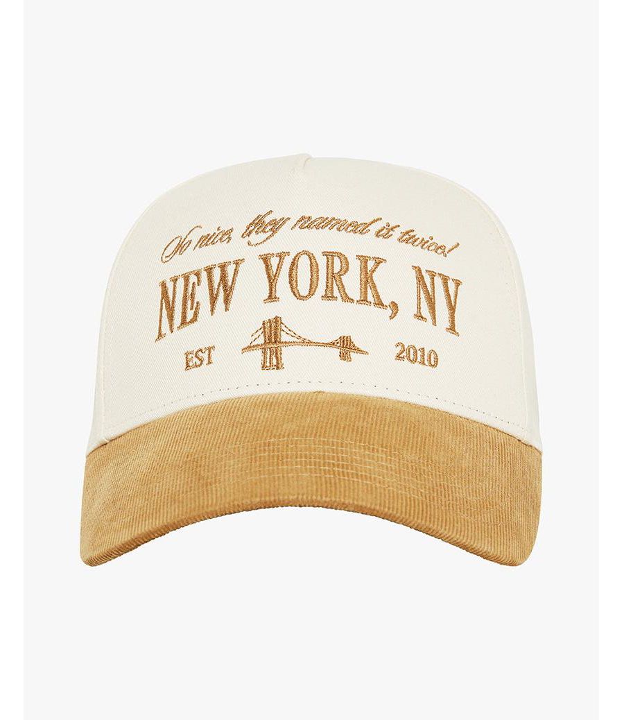 Эта бейсболка, украшенная вышивкой, выполнена из парусины и имеет вельветовый козырек.