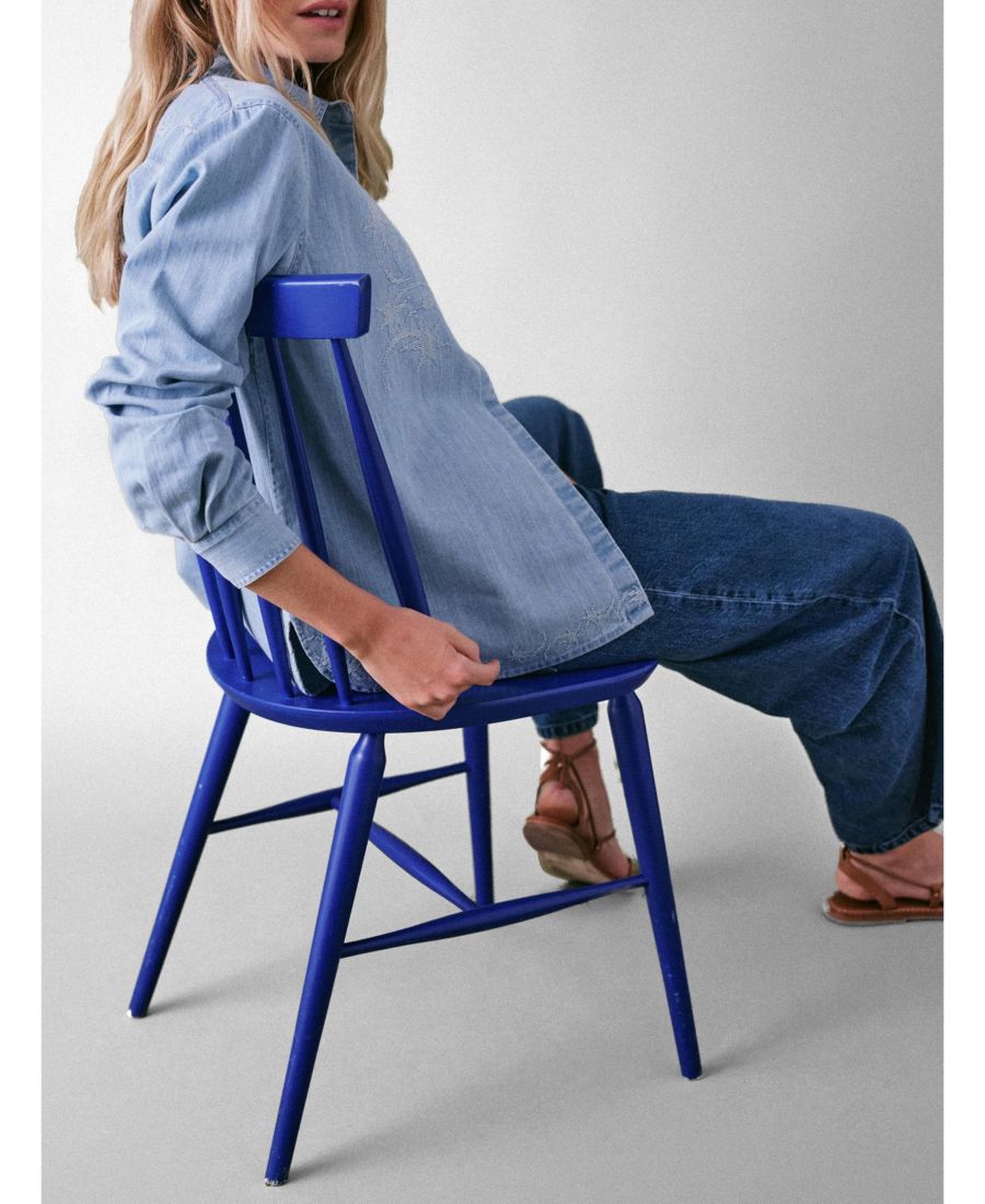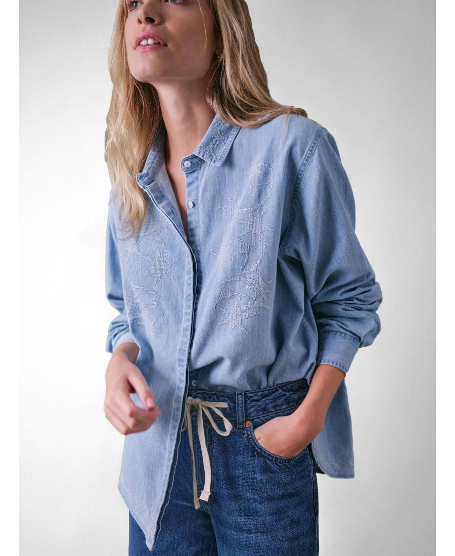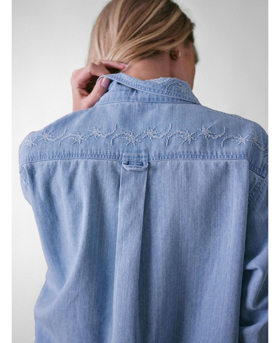 Эта блузка, сшитая из мягчайшего легкого денима, сочетает в себе мужской и женский стиль: свободный крой в стиле бойфренд нежного пастельно-голубого цвета. Украшена звездами, напоминающими драгоценные камни. Длинные рукава, застежка на пуговицы, складка на спине, закругленный низ создают мягкий женственный баланс в стиле бойфренд. Крой Cape Cove разработан таким образом, чтобы быть свободным, расслабленным и непринужденным.