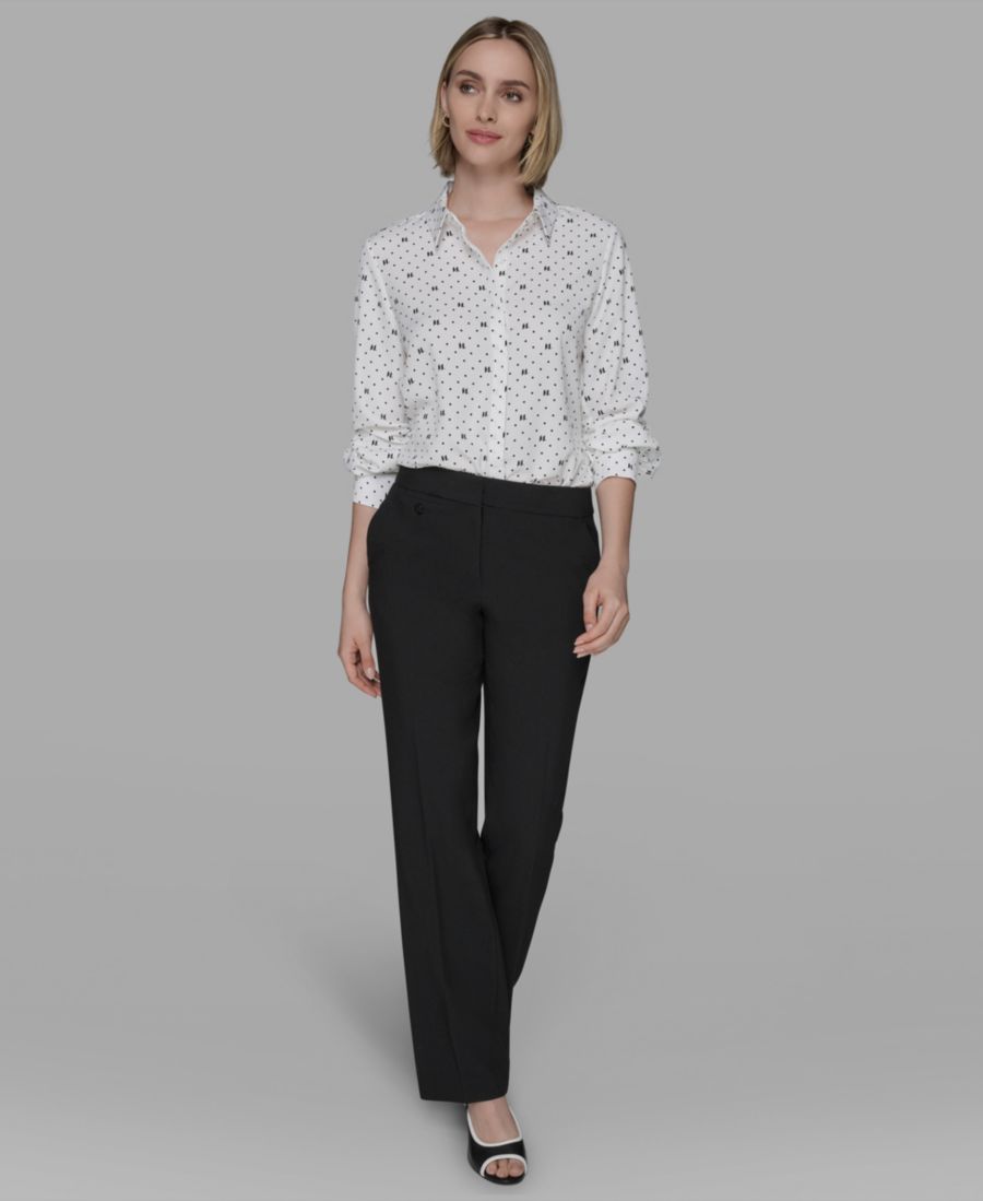 Эта элегантная блузка от KARL LAGERFELD PARIS с воротником и логотипом, выполненная в фирменном стиле, отличается длинными рукавами и застежкой на пуговицы спереди, что делает ее классическим и универсальным дополнением вашего гардероба.