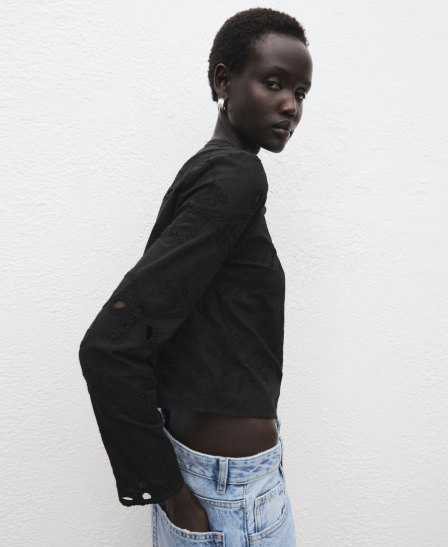 Женская блузка с вышитыми пуговицами MANGO, Black