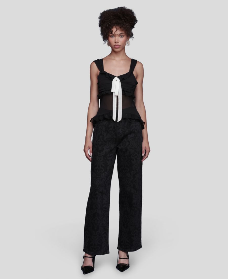 Этот топ на бретелях от Avec Les Filles, украшенный изящной оборкой и бантом, излучает игривое очарование. Вырез в форме сердца создает привлекательную и женственную фигуру.