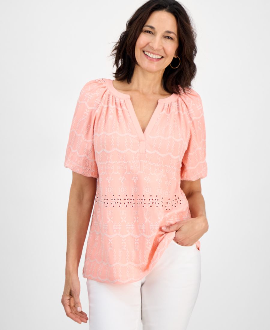 Женская блузка с перфорированным вырезом на шее Style & Co, Blushing Combo 2 285₽