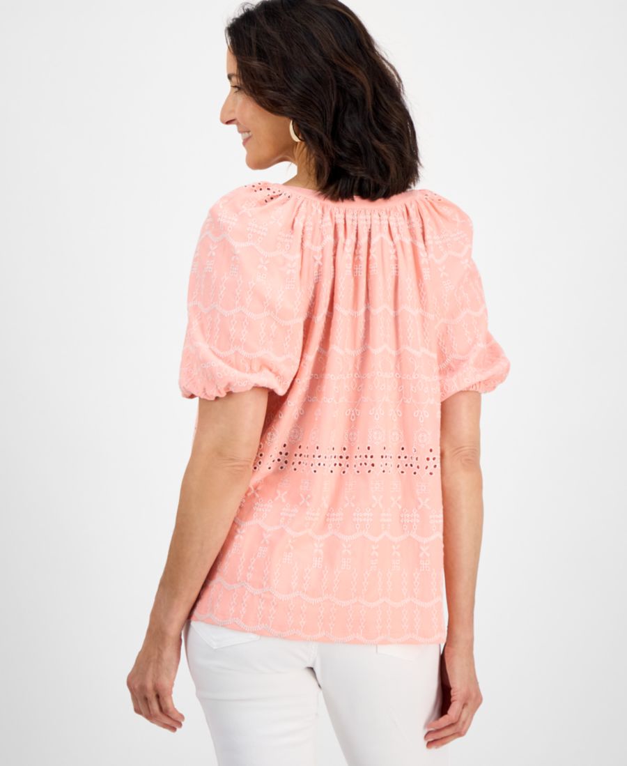 Женская блузка с перфорированным вырезом на шее Style & Co, Blushing Combo