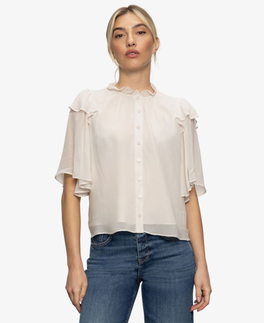 Элегантный вариант для вечерних выходных и просто отдыха: легкая, как воздух, блузка Deja Vu от Sanctuary с развевающимися рукавами и оборками смягчает ваш образ.