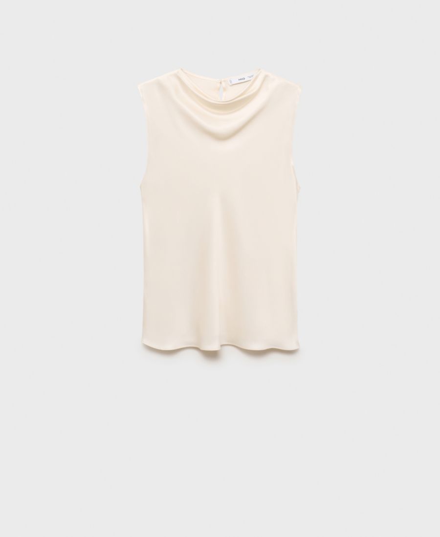 Женская атласная блузка с драпированным воротником MANGO, Ecru