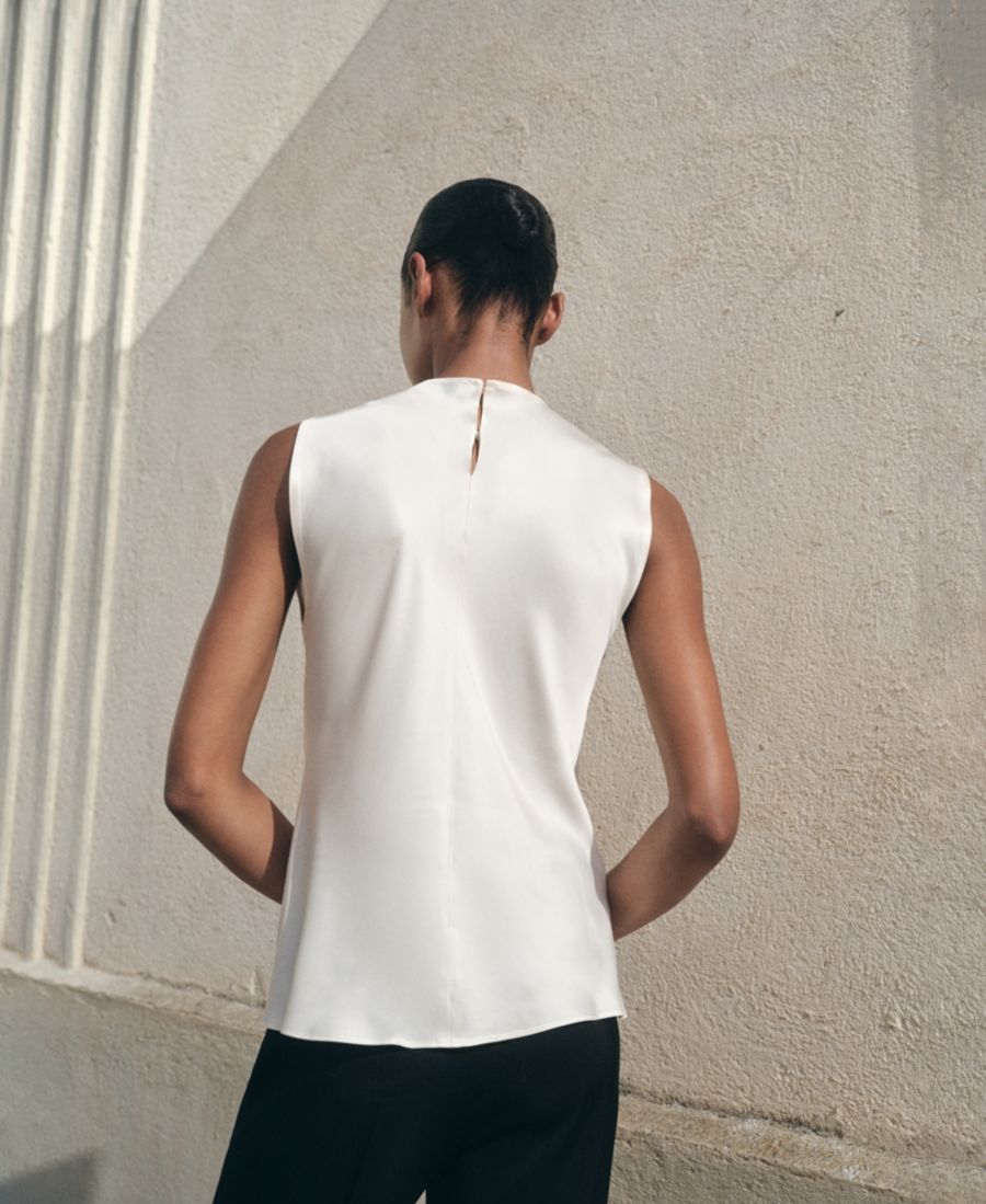 Мягкая, структурированная атласная блузка с драпированным вырезом от Mango дополнит ваш образ. Изготовленная из атласной ткани, эта блузка имеет прямой крой.