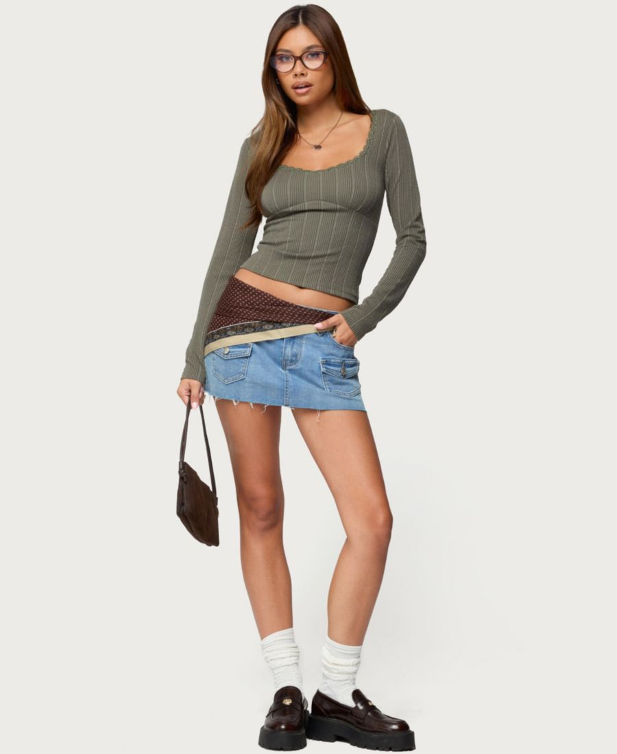 Женская ребристая блузка Beatrix Lacey Edikted, Olive