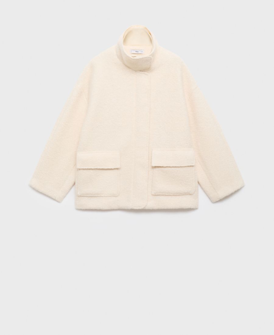 Куртка из букле с высоким воротником от Mango - это стильный и элегантный вариант для прохладных дней.
