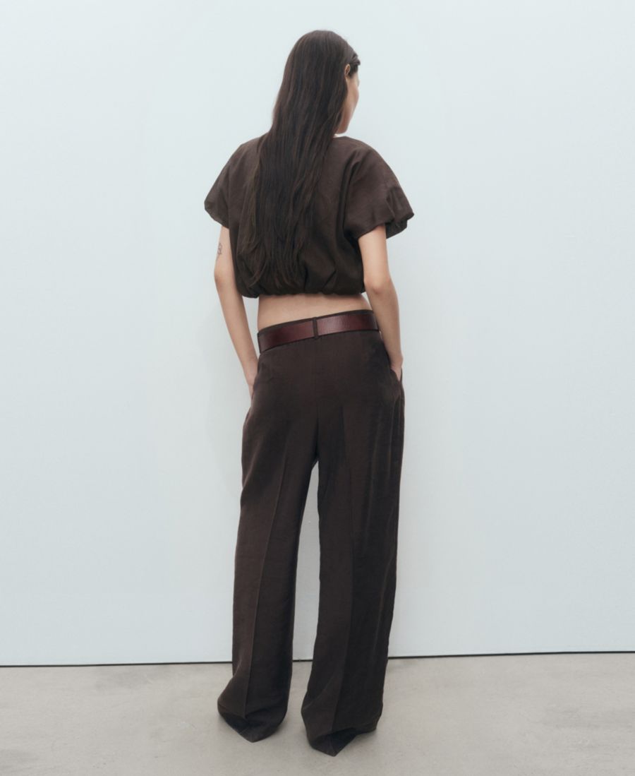 Женская укороченная блузка-баллон из рами MANGO, Brown 7 097₽