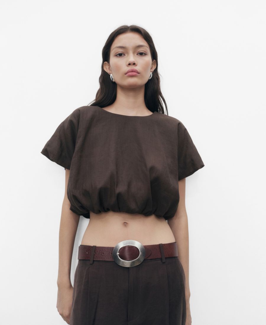 Женская укороченная блузка-баллон из рами MANGO, Brown