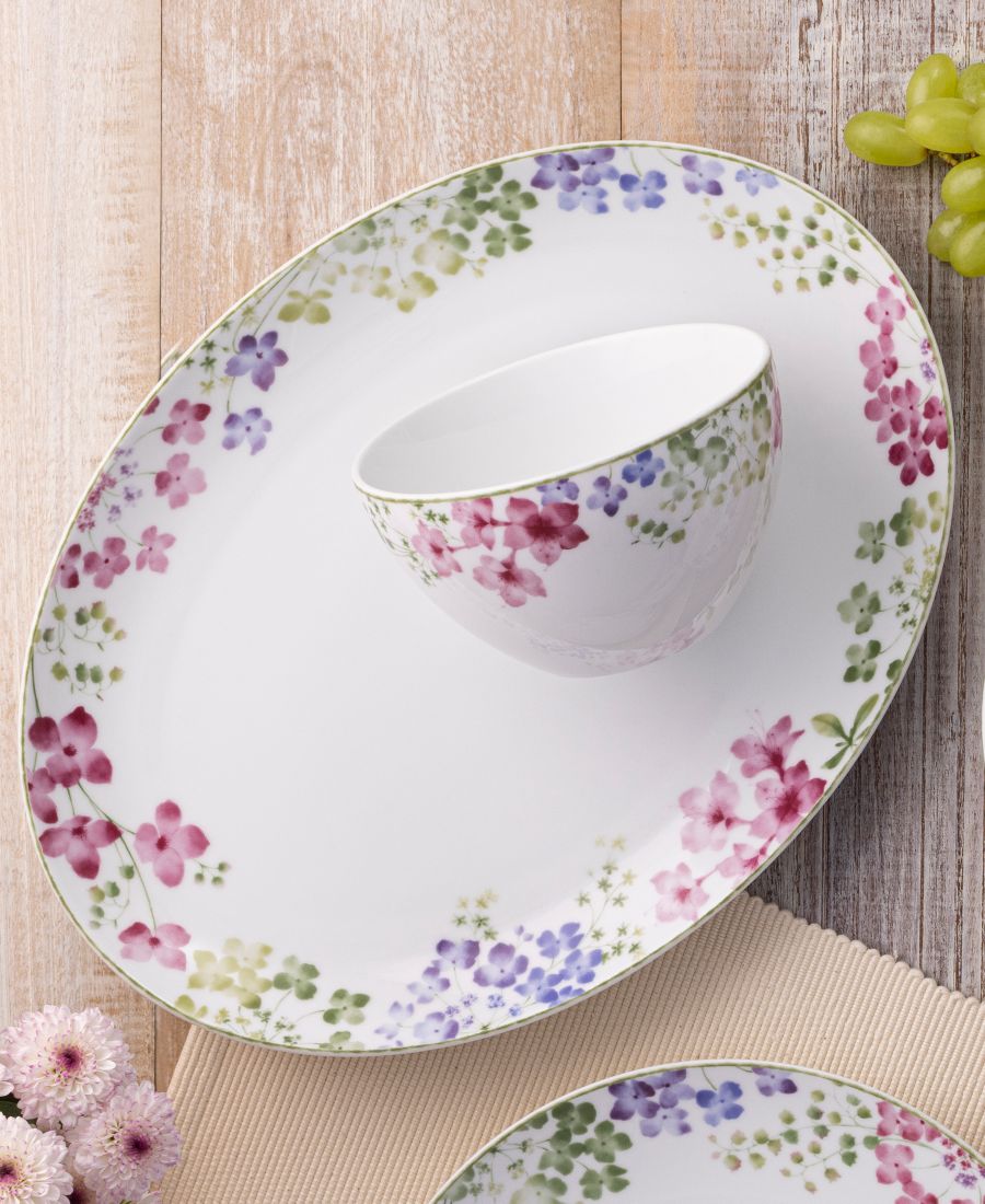 Коллекция Bloomington Road представляет собой интерпретацию цветов кизила и гортензии. Классический элемент цветов дополнен разнообразием оттенков. Коллекция Bloomington Road подходит для повседневного использования и пригодна для использования в микроволновой печи.