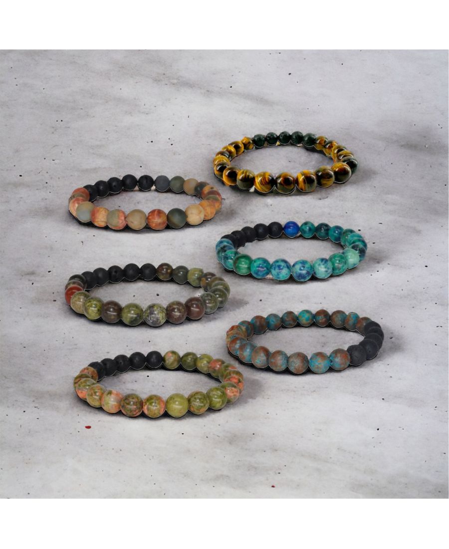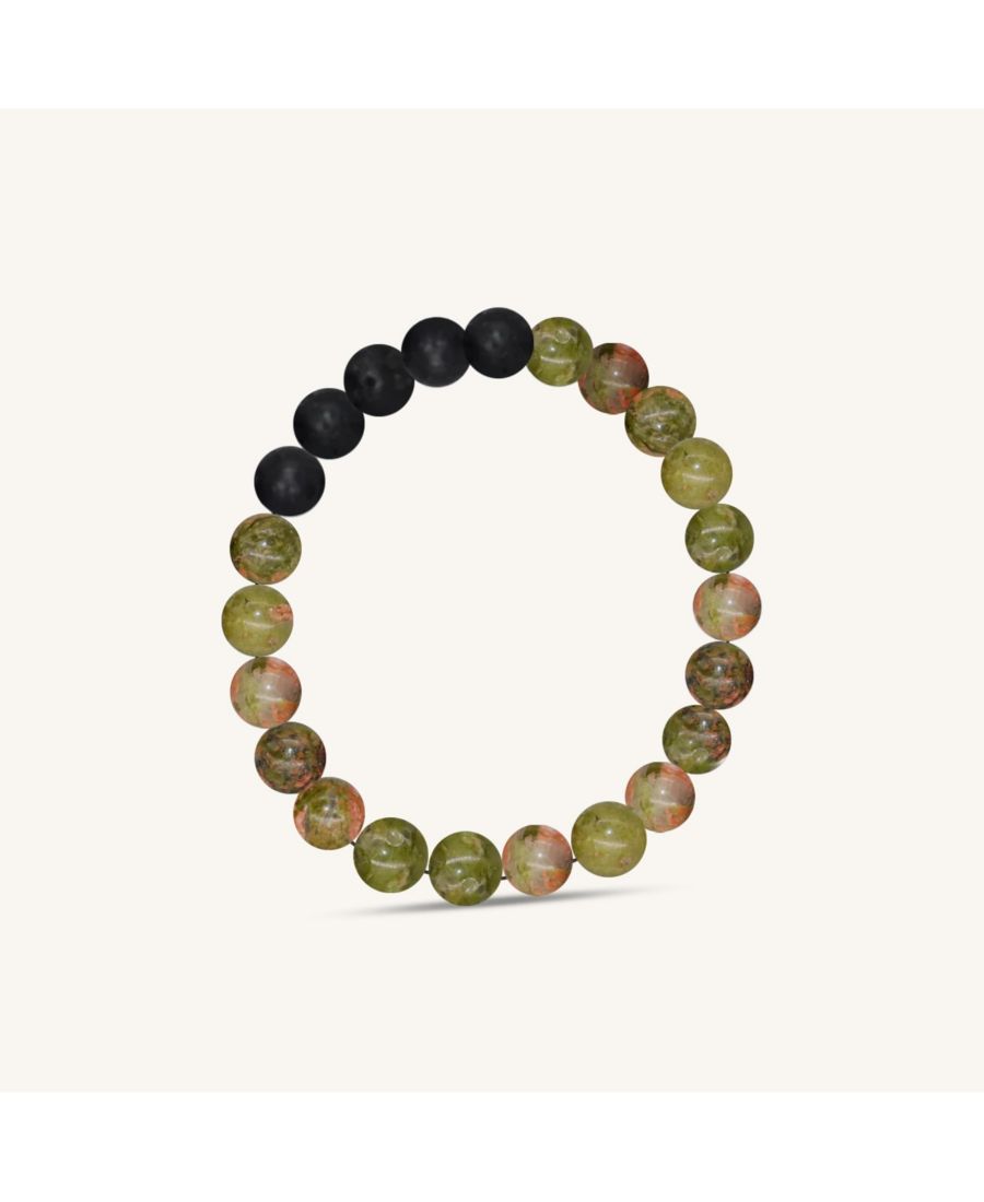 Кристалл унакита - камень видения: уравновешивающий и успокаивающий, он объединяет эмоции и духовность, способствуя гармонии. Изготовлен из высококачественных камней унакита, каждый из которых выбран за свои уникальные метафизические свойства. Кристалл унакита в каждом браслете способствует самопознанию, эмоциональному равновесию и внутреннему покою. Бусины из лавы впитывают эфирные масла, обеспечивая ароматерапевтический эффект в течение всего дня. Носите с пользой, примите энергию гармонии. Откройте для себя баланс с гармонизирующей энергией унакита, объединяющей эмоции и духовность для внутреннего покоя. Этот браслет сочетает в себе красоту и функциональность, изготовлен из высококачественных материалов и обладает преобразующей силой унакита, чтобы поднять ваш жизненный путь на новый уровень. Полудрагоценные камни унакита. Прочная эластичная нить для длительной фиксации. 5 бусин из лавы. Сделано в США