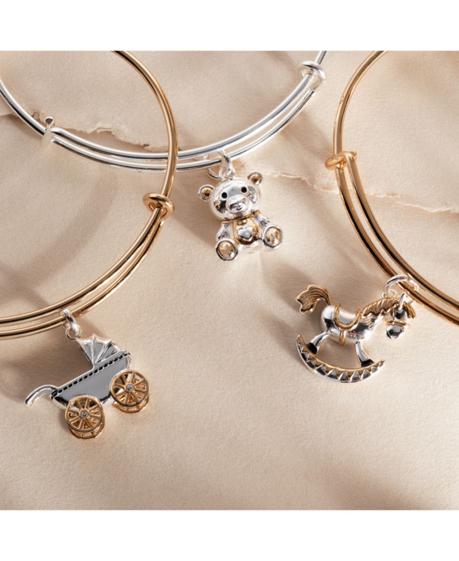 Отпразднуйте радость новых начинаний с этим прекрасным браслетом-манжетой, украшенным двухцветным серебряно-золотым кулоном в виде детской коляски. Идеальный подарок для будущей мамы, этот кулон символизирует волнение и любовь, которые приходят с появлением нового малыша в этом мире. Тщательно продуманный дизайн этого браслета делает его особенным сувениром для будущих мам, готовящихся к одному из самых волшебных моментов в жизни - прекрасной данью уважения пути к материнству.