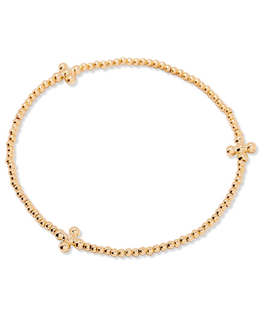 Пополните свою коллекцию украшений браслетом Rylee Beaded Cross Bracelet. Этот современный эластичный браслет украшен бусинами диаметром 2 мм и крестиками диаметром 7,5 мм, выполненными из латуни с покрытием из 14-каратного золота. Идеально подходит для повседневной носки или в качестве подарка, это вневременное украшение добавит непринужденной элегантности любому образу.