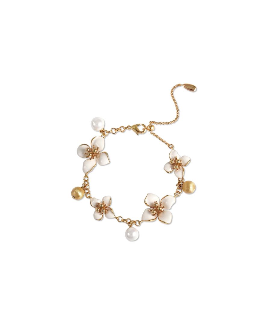 Браслет с цветущим ирисом RETRO CHIC, White & gold