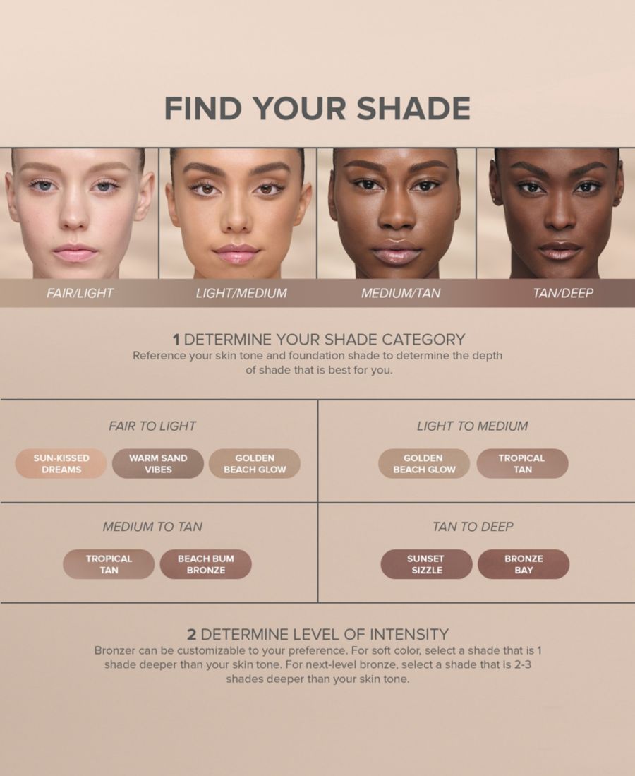 Для естественного бронзового оттенка выберите оттенок на 1-2 тона темнее вашего тона кожи