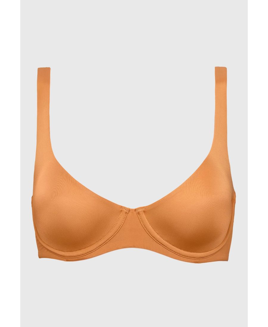Гладкий, скульптурный силуэт, созданный из самой мягкой ткани в нашей коллекции. Изогнутый вырез и бесшовная конструкция модели Scoop подчеркивают вашу естественную фигуру, обеспечивая поддержку второй кожи в течение всего дня. СТИЛЬНЫЕ ЗАМЕТКИ: Закругленный вырез с гладкими, не подкладочными чашечками, плавно переходящими в бретели, создавая четкие линии и лестный силуэт. Гибкий, легкий каркас не отвлекает - не давит и не врезается в кожу. Наш самый универсальный, поддерживающий силуэт. Закругленная спинка в виде купальника для дополнительной поддержки и разглаживания по бокам тела. Регулируемые бретели с золотистой запатентованной фурнитурой и тройной застежкой на крючки обеспечивают правильную посадку. ТКАНЬ И УХОД: Мягкая, непрозрачная микрофибра обеспечивает эластичность, комфорт и защиту сосков. 83,5% полиамид/16.