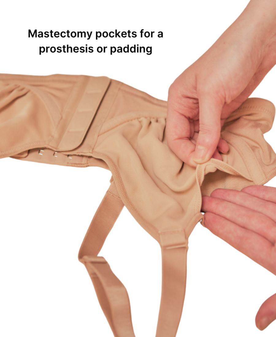 Этот адаптивный бюстгальтер на магнитах, изготовленный из мягкого, дышащего модала, помогает быстро и легко одеваться. Он также имеет незаметные кармашки для пальцев, облегчающие захват, и дополнительные карманы для протеза или подушечек после мастэктомии.