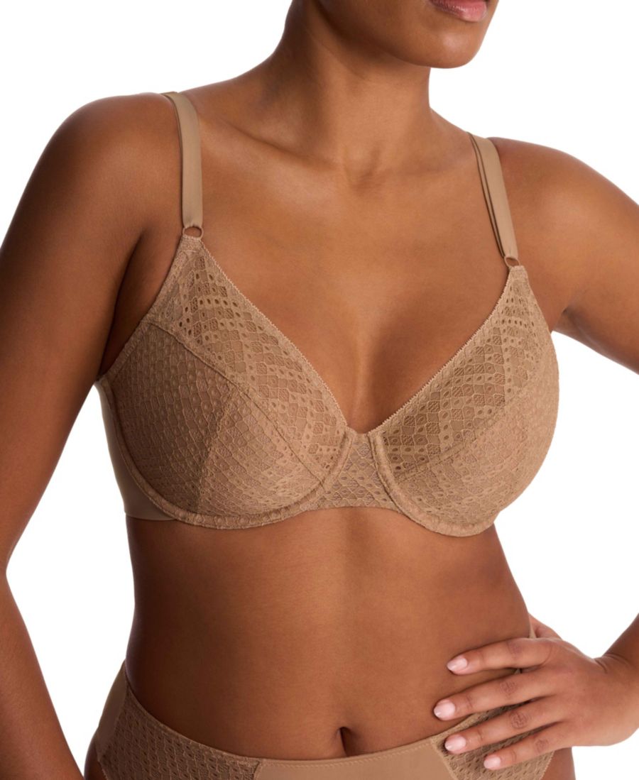 Гладкая спинка на косточках, обеспечивающая фирменный комфорт Natori. Ощутите полную гармонию с красотой геометрического кружева и инновационным двойным трикотажным полотном спинки.
