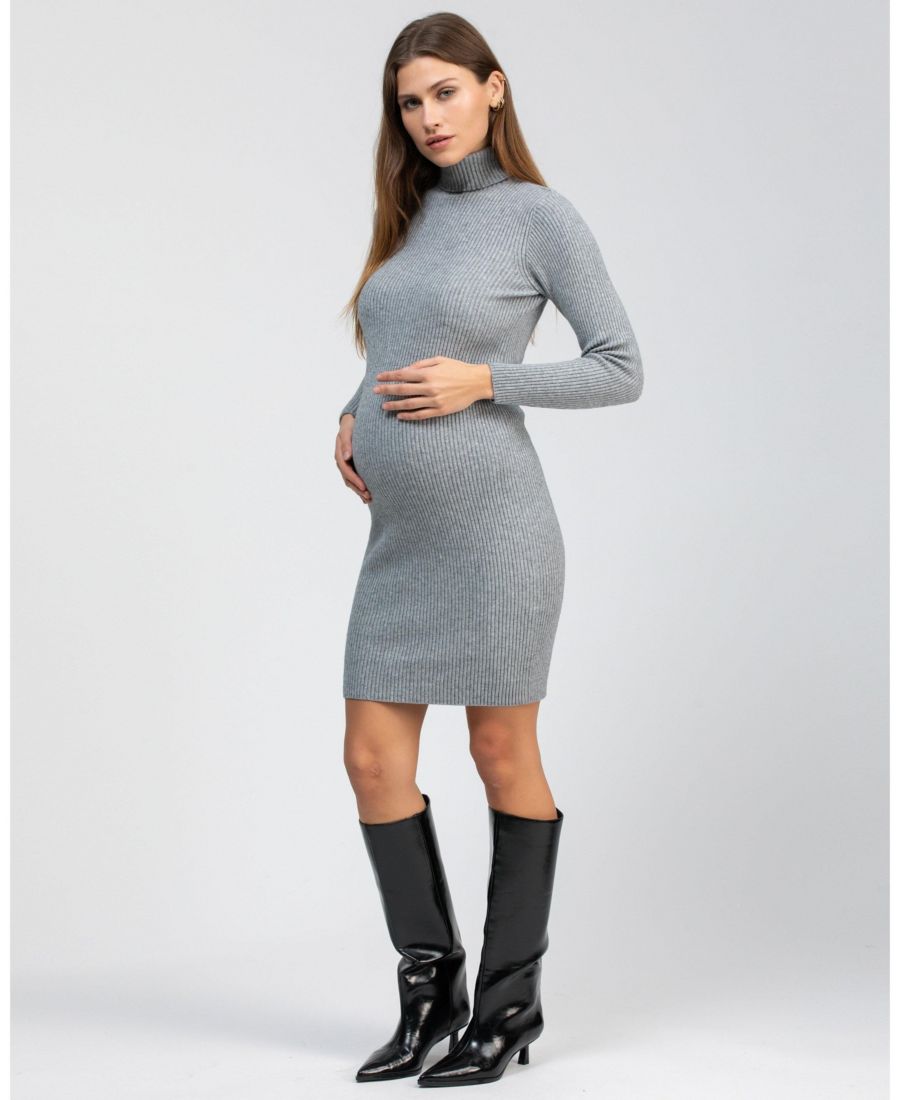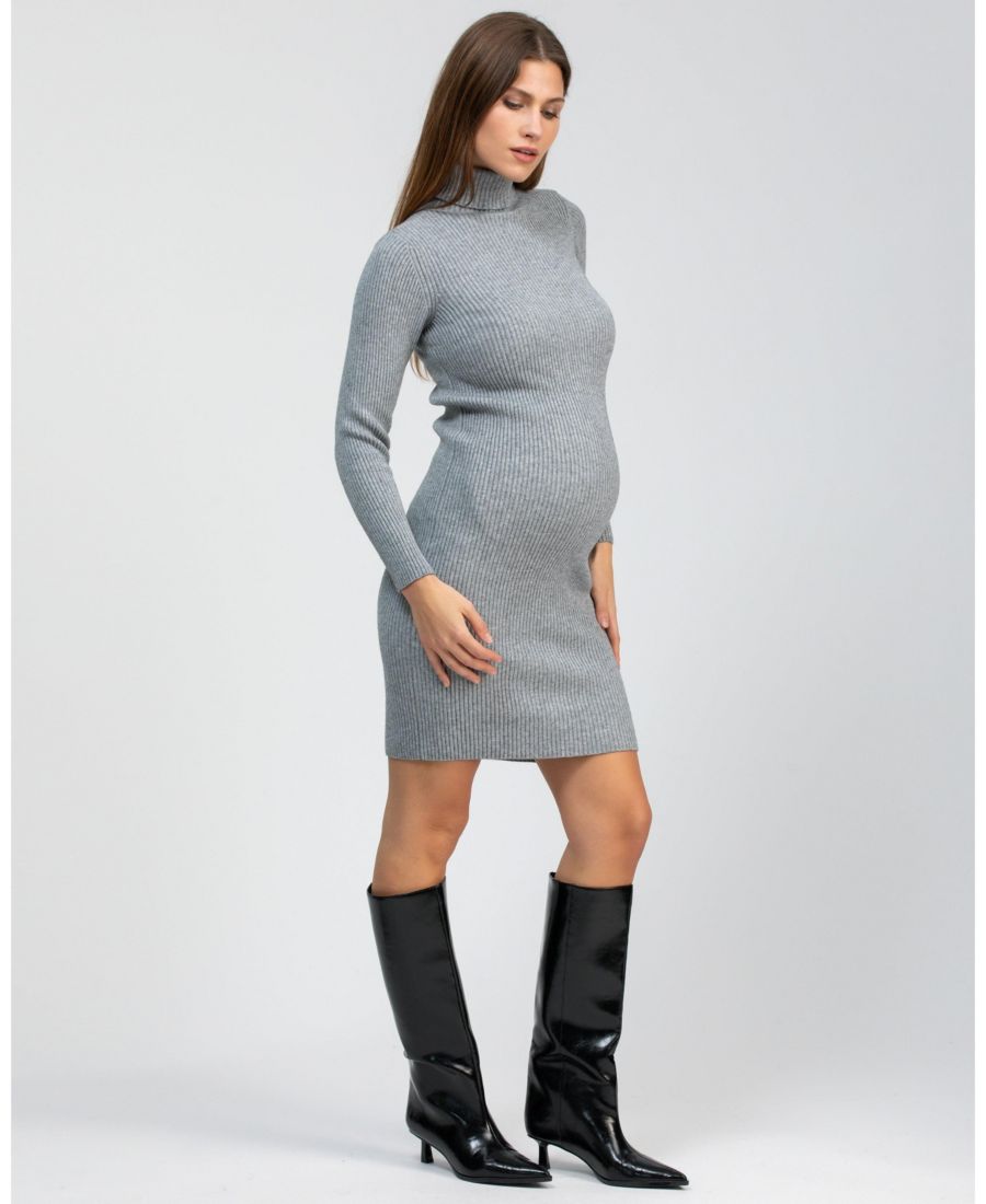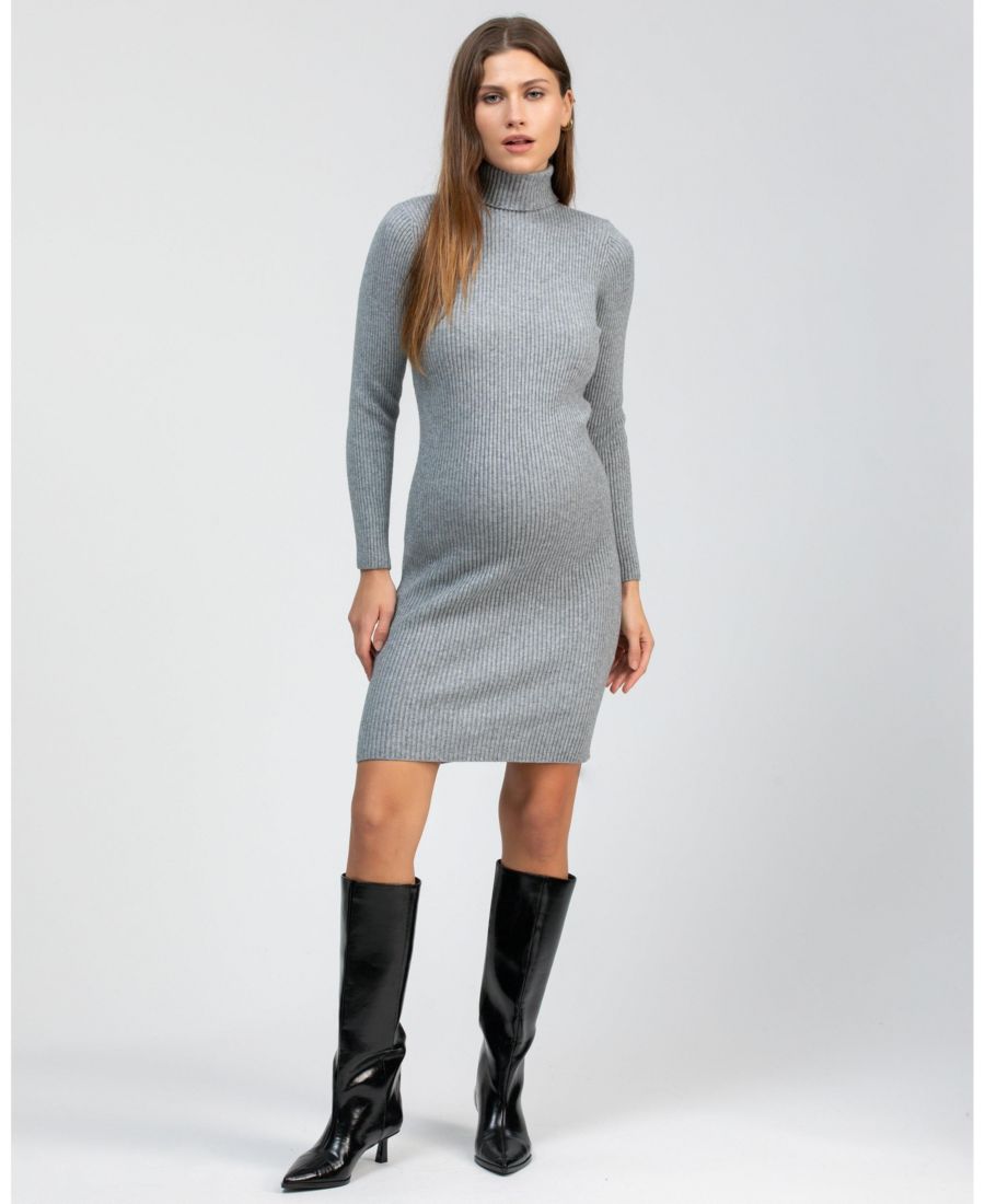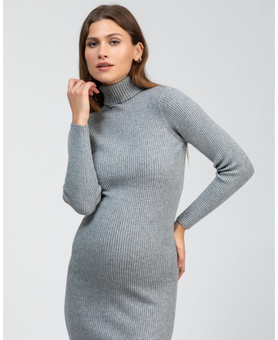 Мини-платье для беременных Celeste с высоким воротником в рубчик, облегающее фигуру PIETRO BRUNELLI MATERNITY, Grey